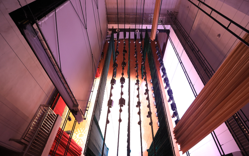 设置于主舞台上部的电动吊杆,用于提升幕布吊杆等,参加演出活动,吊杆可以单独运行也可以几台同步组合运行。