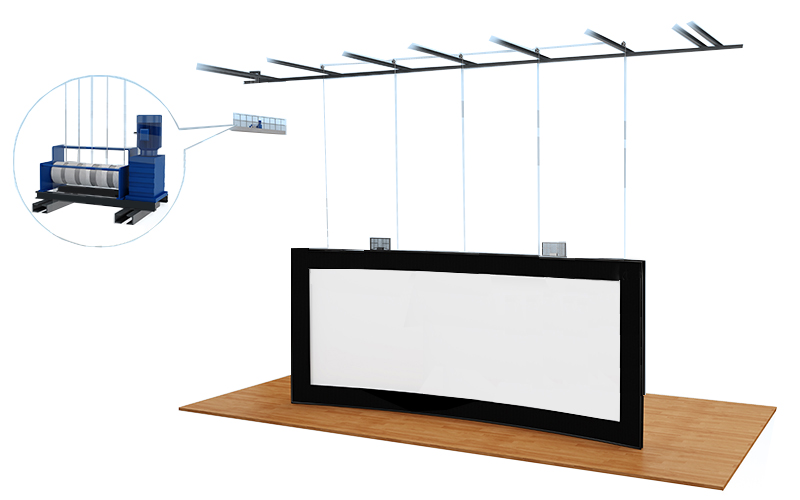 多功能银幕架为三合一体式,可放映宽银幕,遮幅宽银幕,70mm大银幕电影。通过电动调节左右遮幅机构使得放映任何一种电影时画面周边也为人们习惯的黑框,从而得到完美效果。