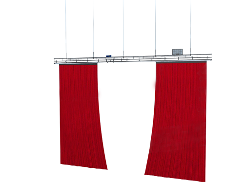 大幕的面料和颜色可直接影响观众的视觉,要求庄重而典雅,面料通常采用阻燃麻绒、丝绒、棉质天鹅绒幕布(其特点:垂感好、遮光好、阻燃好、不变型、不返光),颜色通常选择栆红色或浅枣红两种,通过三折一的艺术制作,给观众以强烈的立体感;衬里选用人丝绸、无丝纺、细纱卡。